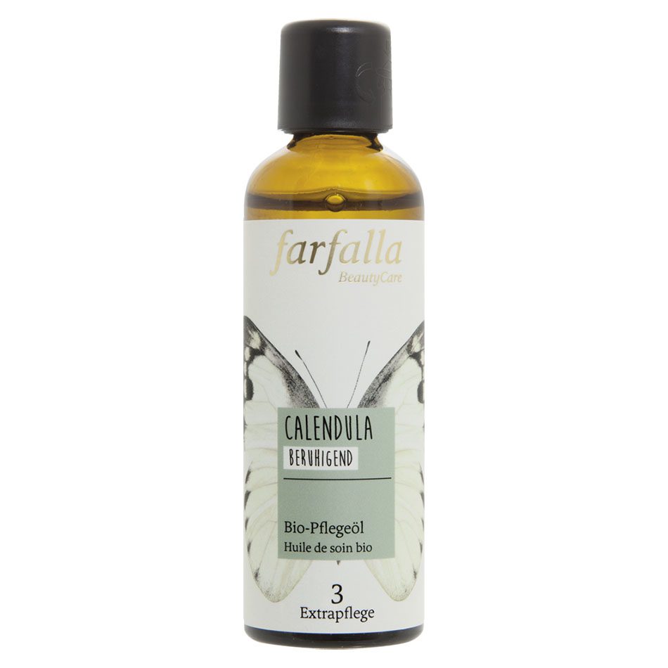 L’huile apaisante. Elle soigne, protège et adoucit la peau sensible et sèche (des bébés aussi). La protection naturelle de la peau est renforcée et les zones stressées apaisées.  L’huile bio de calendula est une macération, soit un extrait d’huile de fleurs de calendula intégré dans de l’huile de tournesol bio. Appliquer légèrement sur visage et corps encore humide et masser doucement.